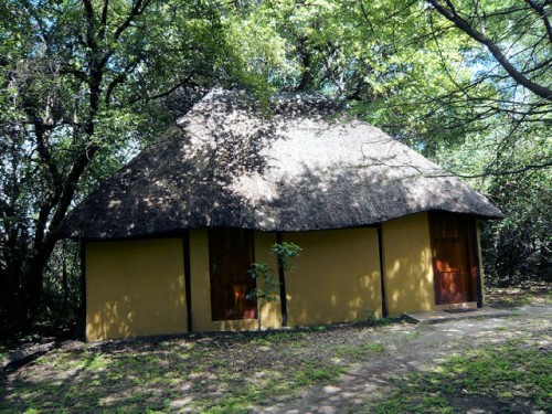 The boat docked at the Lianshulu Lodge named after the lagoon it overlooks. Our home for the next three nights in Mudumu National Park, Lianshulu is a Lozi (local language) word meaning "the place of spring hares). Over a welcoming drink the manager, an Afrikaner born in Namibia, reviewed rules emphasizing the use of mosquito repellent at all times. It was the rainy season and the mosquitoes were out. As I listened, my eyes wandered over the beautiful local crafts that were displayed in the lodge: baskets, wood carvings and bark paintings. Lunch was waiting: spinach quiche, chicken drumsticks, mixed green salad with balsamic dressing and homemade bread.