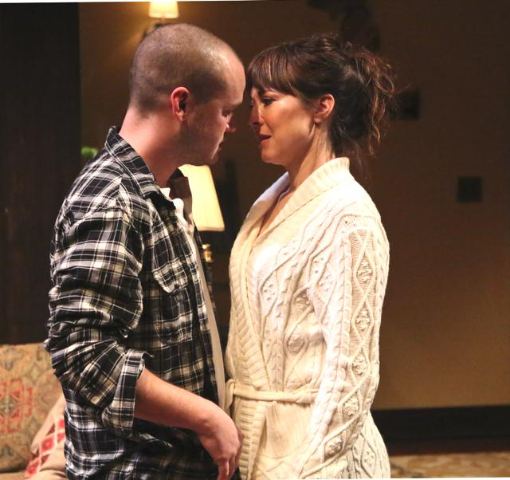 In “Sex with Strangers, the plot revolves around Olivia (Rebecca Pidgeon), an intelligent, mid-career, one-book novelist who is having second thoughts about her ability is a writer, and Ethan (Stephen Louis Grush), a wildly successful, young, hyper-energetic stud/blogger with an ego to match, who meet in a mutual friend’s borrowed cabin on a snowy winter night in Michigan.
