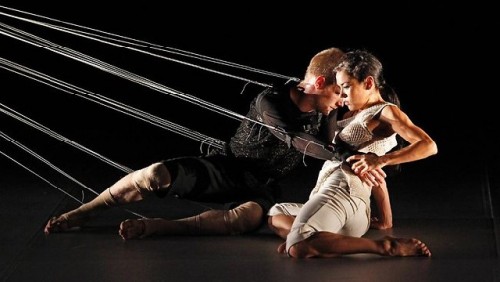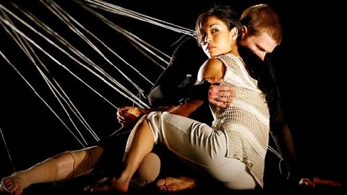 From four dancers attached to the apparatus there was a reduction to a single male. This led to a pas de deux and complex mechanical romance/ frustrated seduction. For all his striving and reaching out to her, literally, there were strings attached.