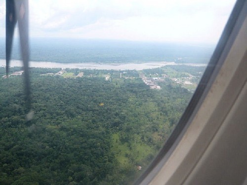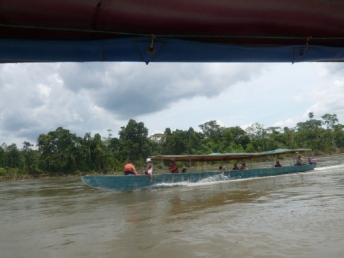 A 30-minute flight from Quito over the eastern slopes of the Andes took us to the town of Coca deep in the jungle by the Napo River, Amazon's longest tributary. Along with the spectacular aerial view, changing from snow-capped mountains to an endless green tapestry with the sinuous river running through it, the temperature rose to 86F. Huge clouds drifted by, ready to dump their moisture onto the rainforest. In Coca, an open-sided minibus with a luggage rack on top transported us to the boat dock, where we were fitted for jungle boots and donned life jackets for our motorized dugout canoe ride to the Yarina lodge, our home for the next three nights.