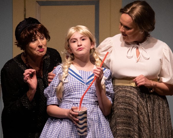 Along the way, we meet Miss Thorn, the third-grade teacher, who selects Louise as the lead in the play because of her parents’ connections, and who suffers through the girl’s acting incompetence. A special recognition goes out to Laura Morgan, who in an emergency stepped in to play Miss Thorn. Morgan is not even the understudy, but the show’s choreographer! Although she had a script in hand to help with the lines, her performance could not have exuded more acting savvy, full of emotion and zest. The audience was demonstrative of its appreciation for her outstanding contribution during the bows.