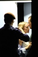 At the ICA/Boston premiere, Scheib and Gelpe's 'motion portrait' read like a voyeurist's tableau vivant: vignettes of stylish, clueless and violent 21st century couplings -ill conceived and run amok –were filmed and projected onto four screens through live-feeds over the staged actions below. Their production's hybrid form followed dysfunction as Scheib explains: