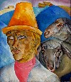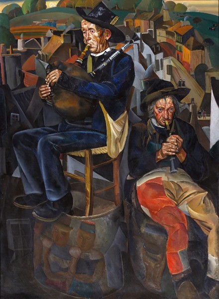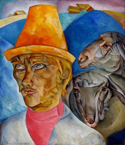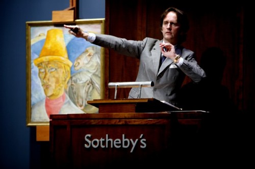 Coming into the night of the auction, November 3, the eve of the national election, the economy was tanking. Some lots of the sale were withdrawn. The Grigoriev paintings "Shepherd of the Hills" "Man with Pipe" and "Binious (Pipe Players)" came to the block in the middle of the sale which, in general, was not going as anticipated. Some 20% of the lots did not make their reserves and were passed. The high point of the auction, preceding the Grigorievs, was reached when the 1916 "Suprematist Composition" by Kasimir Malevich sold for $60 million. Auctioneer Tobias Meyer, knocked down the three Grigoriev paintings at their low estimate of $7 million.