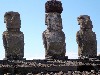 Our next discovery was a set of boat-shaped stone houses – structures up to 6 meters long with very low entrances. During excavations in 1882, human remains were found inside; the houses are believed to have been used as graves for the ariki, the island’s kings and chiefs. Each house had two small holes; in the event that a hostile spirit entered one, it was thought that the spirit of the deceased could escape through the other. We met the park ranger and his two daughters, who enjoyed seeing photos of themselves on my camera.