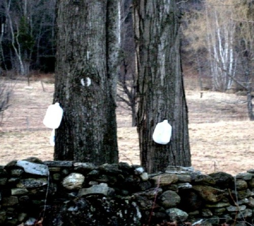 All over the Berkshires along the roads and in the woods there are buckets attached to maple trees. The sap is then boiled down to make liquid gold.You know if you every bought even a small jug of pure maple syrup. It comes in several grades.