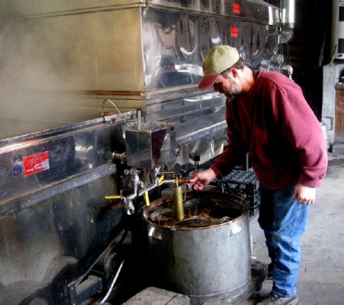 Now and then an attendant drew off a sample for testing. It takes a lot of sap to boil down as concentrated syrup.