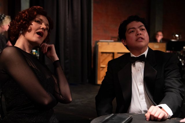 The other memorable number is a nicely delivered “I Could Write a Book,” a love song that Joey sings with Linda, the other party to a not-well-explicated link in a love triangle (much clearer in the movie). Nico Jaochico is Joey, and while his portrayal demonstrates his confidence and charisma, he lacks sufficiently mature appearance and uneasy demeanor to convey the weight of having suffered rejection as a performer in several cities throughout the Midwest.