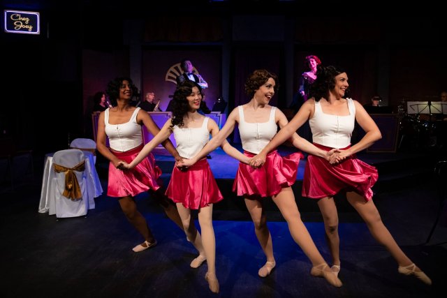 Despite the size limits of the upper stage, Rachell King’s choreography adds important entertainment value and to the feel of being in a nightclub. The chorines do a nice job in executing several dance styles from tap to pseudo-ballet. Finally, Ava Byrd creates a wide array of appealing and effective costumery. Director Laura Morgan brings all the pieces together.