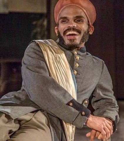 Round Heads is more a pageant than a play; there are few plot intricacies and little character development. There are plot points involving a farmer (Caleb Roitz) who thinks his taxes and rent are too high; he demands a horse to help him plow his fields. His daughter Nanna (Maryam Abdi) goes to work in Madame Cornamontis’ coffee house and then Madame C (Ann Sonneville) sells the Zakkish girl to a Zik. There’s a trial of a Pointed Head landowner (Ben Chang) in which the judge (Nora King) holds court at the top of a tall ladder, wearing a massive curly white wig. A sharp and articulate attorney (Ambrose Cappuccio) defends his client. A nunnery is involved too.