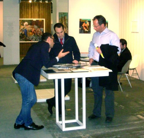 The Armory Show primarily focused on the major international dealers. There were the usual suspects and the work was mostly mainstream and high end. After taking in such a sprawling display it was quite delightful to down throttle into the far more orderly and richly satisfying Volta which was dedicated to displays of single artists. It was rather like visiting a number of Chelsea galleries but all on one floor. And the selection of work was of great interest and quality. There we found the peripatetic Boston dealer, Camillo Alvarez of Samson Projects, manning a booth displaying work by Susannah Sinclair, who graces the cover of the most recent issue of New American Paintings. He clicked off a list of several art fairs he will be participating in this month from Chicago to Mexico. As he put it you have to follow the money.