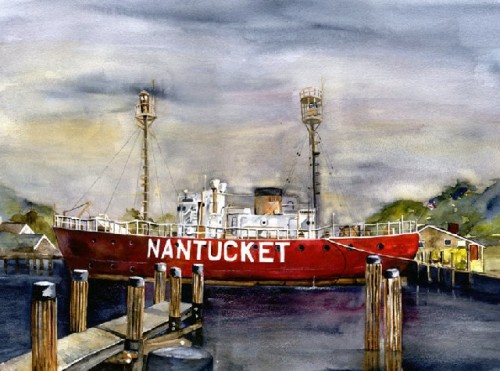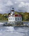 This exhibit is a tribute to these respected and cherished buildings --- some still operational, others are treasured relics of days gone by. Many are off the coast of New England, Cape Cod and the Islands, others Long Island Sound, the Hudson River and even Lake Gitchi Gumi. Her goal is to paint at least one light house from each state.