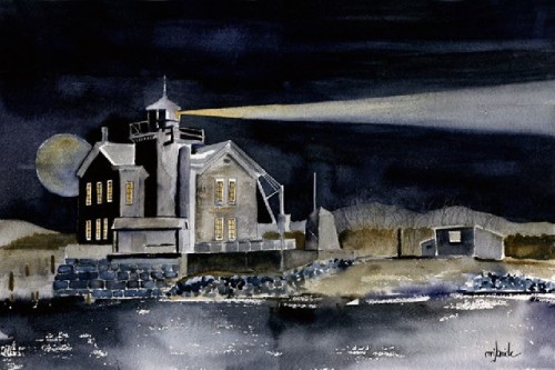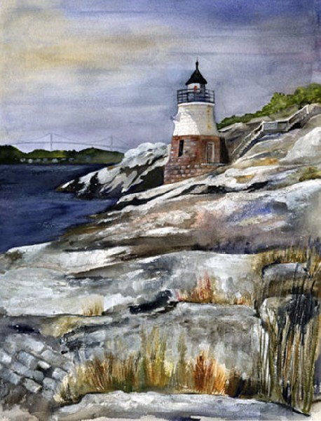 Bride’s fascination with lighthouses goes back quite some time, even before she began painting. Brought up on the water and around boats she was exposed to lighthouses for much of her life. Even now, whenever traveling to a new location, she tries to find new ones to visit. Besides learning the history and some amazing stories about each lighthouse, she now captures these cherished structures in watercolor.