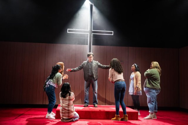 The curtain rises on the New Testament Village Church, located somewhere in Middle America and populated by “Promise Keeper Girls” and “Truthseekers,” members of a male support group.