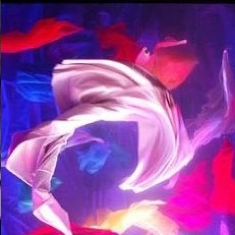The glorious abstract puppets made of feathers, silks and other more durable materials whirl past us. At one point a spotlight, and then two, shine from the top of the aquarium, spreading a descent of light, as though a celestial presence is pervading the space. Riots of color and movement accompany the Witch's Sabbath as dreamed by the composer.