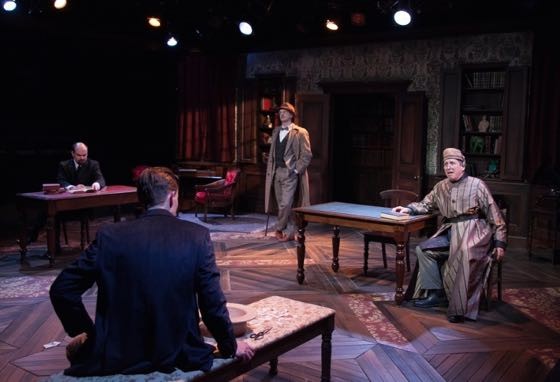 The opening introduces a set of puzzle pieces that get unpacked and repacked throughout the play. In the Zurich Public Library, James Joyce (James Houton), Tristan Tzara (Greg Matthew Anderson) and Vladimir Lenin (Keith Neagle) sit at separate tables dictating, reading and writing. Joyce dictates bits of "Ulysses" to Gwendolen (Kelsey Brennan), then sorts scraps of paper from his pocket for gems of his writing. Tzara writes lines of poetry, slices them up and tosses them in a hat. Lenin, writing about imperialism, receives news of a revolution from his wife, Nadya (Jodi Kingsley). It's a confluence of geniuses in Zurich, 1917.