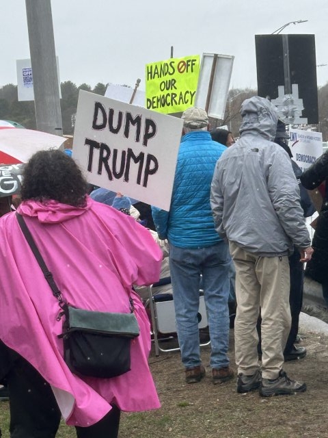 Then, April 5th saw more than 1400 separate protests and millions of people participating in all of 50 States! Washington, D.C. drew more than 100.000 marchers. New York City and Los Angeles had huge demonstrations; and so did London, Paris, and Berlin! Every other big and small City, town, and angry members of communities in the USA protested! We joined a sizable group in the hundreds at the first big traffic circle in Gloucester, Massachusetts. Our shouts and signs received supportive honks from the thousand cars that were driving around the circle every few minutes! The protest lasted for more than two hours. Indeed a huge success!
