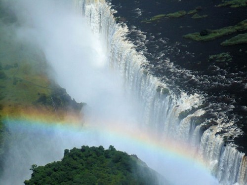 The following day we had a variety of optional activities to choose from, including bungi-jumping off Victoria Falls Bridge. I opted for the helicopter ride over the falls, the Livingstone Museum tour across the border in Zambia and the sunset cruise on the Zambezi River. The helicopter ride, although only 12 minutes long, provided breathtaking views of the great tapestry below: green-white water compressed into the gorge, dripping rock faces, billows of spray, rainbows and jungle all around. Our pilot flew close to the ground so that we could see the river's journey to the edge over a platform of black basalt, gathering momentum before it cascaded down. As the helicopter circled over the falls, we were able to enjoy a bird's eye view of the rain bowed sunlight, penetrating the heavy mist over the gorge across the lush forest.