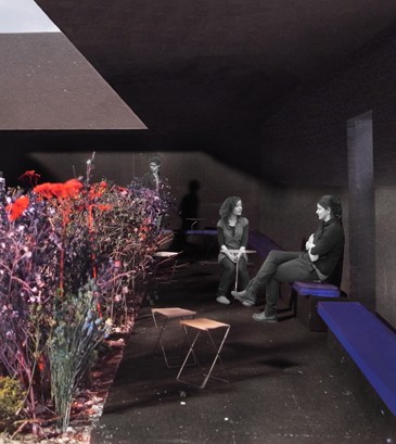 According to Zumthor, "the concept for this year’s Pavilion is the hortus conclusus, a contemplative room, a garden within a garden. The building acts as a stage, a backdrop for the interior garden of flowers and light. Through blackness and shadow one enters the building from the lawn and begins the transition into the central garden, a place abstracted from the world of noise and traffic and the smells of London – an interior space within which to sit, to walk, to observe the flowers. This experience will be intense and memorable, as will the materials themselves – full of memory and time."