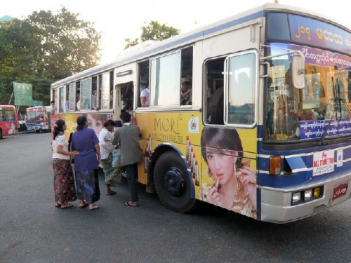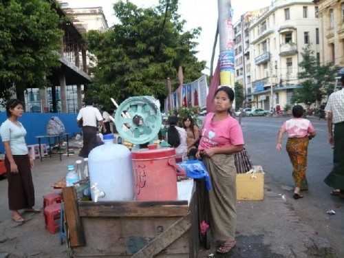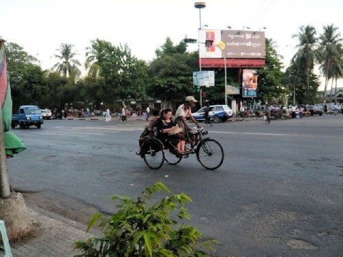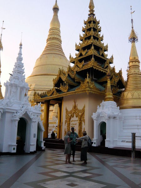A walking tour of downtown centered on the area around the 2,000-year-old Sule Pagoda, with tiered golden roofs along with British colonial architecture and tall modern structures. Decaying old buildings turned into slum houses occupied blocks with other structures used as government offices. Food vendors on sidewalks, women carrying bundles on their heads, advertisements painted on public buses and billboards, and laundry-filled balconies on apartment blocks all contributed to the visual cacophony of the old town. As day turned into night, golden pagodas lit up, creating a magical nightscape.