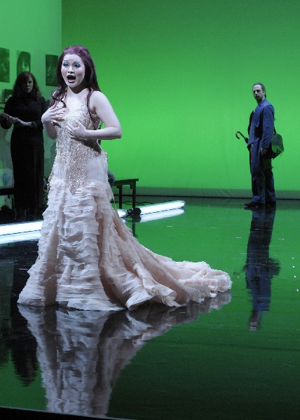 Madame White Snake, a classical transformation myth, is the story of a powerful white snake demon who transforms into a beautiful woman to experience love, only to be betrayed by her husband when he becomes suspicious of her. The principal cast at the premiere included soprano Ying Huang as Madame White Snake, male soprano Michael Maniaci as the transformed green snake Xiao Qing, tenor Peter Tantsits as Madame White’s husband Xu Xian, and bass Dong-Jian Gong as the menacing Abbot Fahai.