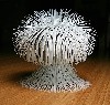He turned to experimenting with plastic ties.This inspired us to commission a pair which he designed to function as a chandelier over our dining room table.