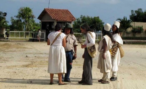 The journey began on January 16, 2010 in Valledupar at the site known as Pozo Hurtado on the Guatapuri River and ended ten days later at the same site. The group of thirteen mamos and apprentices accompanied by TEP support staff (and 5 guests invited by the mamos) made the journey around the black line, visiting a total of forty sacred sites or “points of payments” (puntos de pagamentos) where spiritual offerings were left in accordance with “The Law of Origin.”