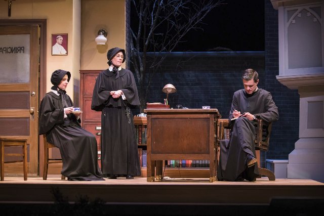 One of Shanley’s strengths as a playwright is his take on the traditional hierarchy of the Catholic Church—starting with the Pope, to the cardinals, to the bishops, to the parish priest, to the nuns. In this case, the doubt about Father Flynn belongs to an older nun, Sister Aloysius (Colleen Madden). She leans heavily on her intuition for guidance. She is convinced “beyond a shadow of a doubt” that her assumptions are correct. But as she is “only” a nun, one must wonder whether gender imbalance is at the heart of her conviction.