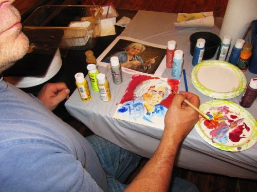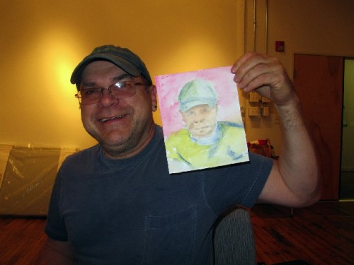 Some, as I did with my pal Phil, may opt to use their friends as live models. This proved to be a bit tricky as we were opposite each other and both intently focused on our paintings. I could only get him to look up and hold still now and then.