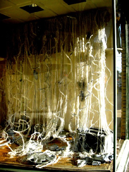 For the other window piece Michelle Vitale Loughlin installed a cascade of foil strands that simulate a waterfall. In a comment on ecology the waterfall contained debris. Matt Pass provided a sound component to the installation.