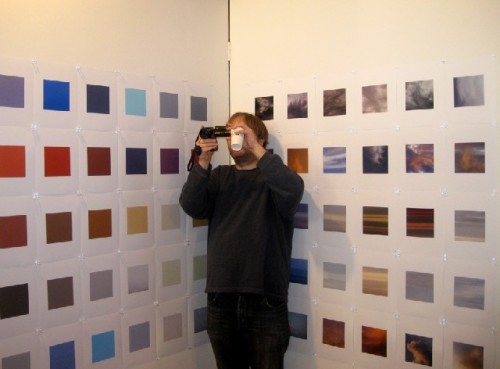 The MCLA professor, Gregory Scheckler, is know for small, meticulous paintings. This time he is showing a grid of prints of cloud studies.