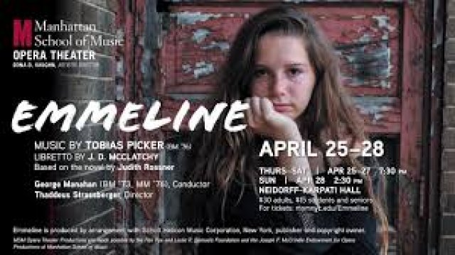 Manhattan School of Music mounts a superb production of Tobias Picker's Emmeline this spring. Directed by the supremely gifted Thaddeus Strassberger, the work has been moved into the present and resonates as a universal tale. George Manahan, who conducted the world premiere of the work at Santa Fe Opera over twenty years ago, led the orchestra revealing all the richness of the score. Young talent created unforgettable characters in this re-telling of a Greek myth.