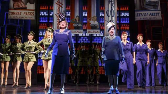 Add to this two talented, albeit underused, male leads, John Dossett and Douglas Sills, who play the much needed foils to these two wonder women, a thicket of beautiful leggy Elizabeth Arden sales girls, Helena Rubinstein’s beauty technicians, and cosmetic customers who inhabit War Paint’s minor roles. Backing up the actors are a slew of surprisingly inventive and ever-changing confection of colorful sets (David Korins), costumes (Catherine Zuber), and lighting (Kenneth Posner) – pink and red are the reigning colors du jour – and you will quickly understand the verbal wows emanating from the audience, as well as the riotous standing ovation at curtain call.
