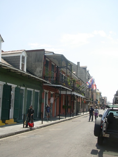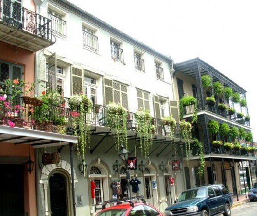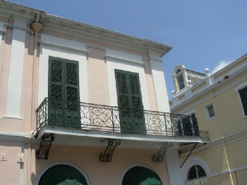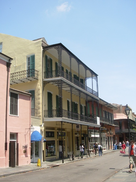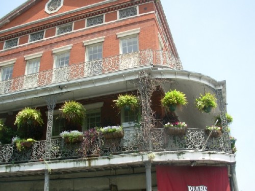The historic French Quarter, which is located on higher ground, was spared much of the devastating damage of Hurricane Katrina. This has aided in the recovery of the tourist bindustry which drives the Big Easy.During a walking tour we were fascinated by the many and varied examples of the unique tradition of wrought iron balconies overlooking the streets. In the tropical climate, in the era before air conditioning, surely these graceful architecturl features afforded the opportunity to catch a cooling evening breeze.