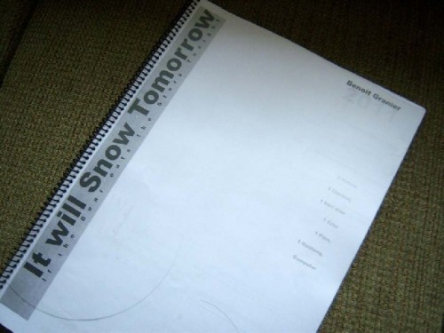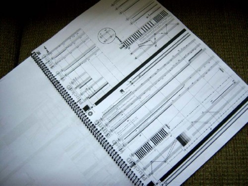 Dimitrius Spaneas rewrote his composition, ‘Gymnopedia,’ to be played by ancient Asian instruments for the TIMI Ensemble and performed it with them playing the clarinet. Timi MME (Modern Music Ensemble) is the only professional ensemble of its kind in Beijing. They are currently touring in the US. Benoit Granier, a French composer, as the director of TIMI, presented with seven musicians: ‘It will Snow Tomorrow - if the Bear eats the Stars Tonight.’ Clarinet, violin, and computer are known instruments in western contemporary music. The exquisite musicians of the ensemble also played a dizi/xiao, erhu, pipa, and guzheng, all ancient Asian instruments. Granier’s score resembles a graphic layout. Please take a look !