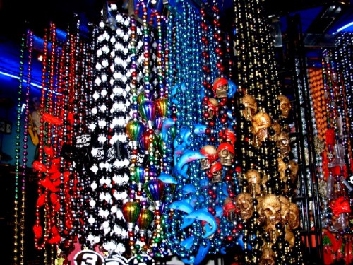 Day and night the fun never stops on Bourbon Street where every day is Mardi Gras. The souvenir shops sell the beads and masks so you don't have to wait until Fat Tuesday to have them tossed to you from a passing float.