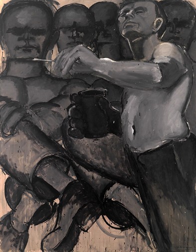 The media is our current equivalent of the pyramids, a collective project upon which millions slave to create and maintain. It is not for nothing that Warhol called his studio The Factory. The critics and artists who embraced this world view got to lord it over those artists with the epithet of Bourgeois, suffering from a false consciousness. I recently saw a biopic of Camus where Sartre leveled that insult at Camus . That insult and the following were the mantras I heard repeated throughout my career: Death to painting, Death to the individual. The air got sucked out of Lester’s expressionist world very quickly.