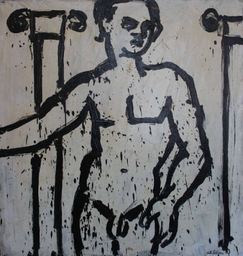 Johnson’s early heads from the early to mid sixties ‘60s are emphatic in their message that we are here in this world not somewhere else. The implied effort of his stroke states that Lester Johnson is in a shared space with the head of the person he is representing. There is always a sense of decision in the splash of the paint on canvas. Man cannot avoid deciding for or against something. His frequent use of the Classical Greek head seems to say that this idea of man has always been with us. It is trans-historical, anti-Hegelian. His work has that knotty difficult quality of a Beckett play, where despite all the gestures and acts nothing is resolved; Human existence is reduced to its essence in “Waiting for Godot”, where act upon act doesn’t seem to resolve their angst. In the end they are there, just there.
