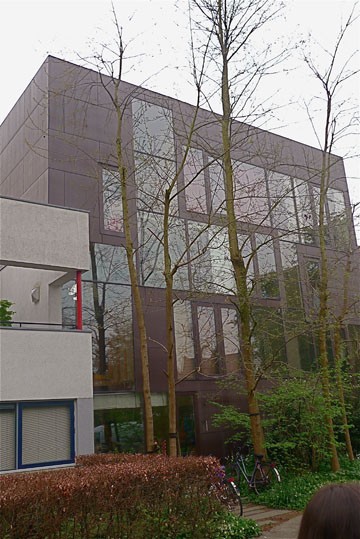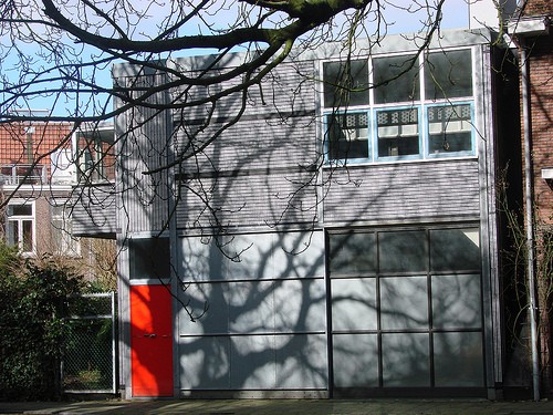 A few blocks away from the Rietveld-Schroeder House overlooking a beautiful Utrecht park is a slightly later Rietveld house. This house , actually an addition to an existing home, was created for a prominent doctor. It is referred to as the Chauffeur's House (1927-28), and it clearly demonstrates a more Bauhaus stylistic approach. Here, Rietveld was able to use concrete as a building material. Nearby to this house is a cleverly designed contemporary two family house by the architectural firm of MVRDV built 1995-1997. Two families that had uneven amounts to invest in the project decided to join together to have the structure built. The trick here was to divide up a house 60/40 which was achieved by use of windows and glass. Thus, the great Dutch modern design tradition is continued 70 years later.