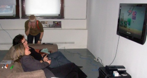 During the press conference we spoke with Lynn Hughes a coordinator of Lab Poreux/ Porous Lab. She is a dean at Concordia University involved with the study and development of games. It seems that Montreal and Vancouver are renowned as centers for alternative game development. This is precisely the kind of grass roots, youth mandated art and culture which is little understood and studied by the mainstream. During the opening the room was packed with individuals playing with a variety of games. It was a culture of which I have little or no direct knowledge. So I am very grateful to this exposure through Hughes and the Biennale.