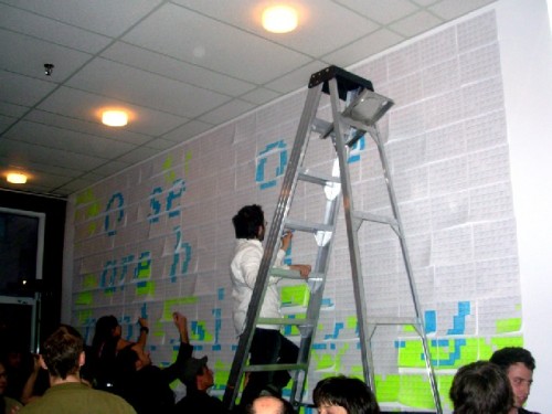 A couple of days later, having viewed and engaged with a lot of the projects, I resumed a conversation. If there is no presence of art stars, and commodity art, with so much emphasis on process, interaction, programming and the internet, why then the need for real estate? Why not have an "on line biennale?" One might log onto a site as matrix, link and network from there. The Montreal Biennale would be the epicenter, source and station for a global project. It would certainly be cost effective and provocative with the prospect of millions of visits and hits. "Yes," Jolliffe responded, "But you wouldn't have this, the person to person human factor." The unique dialogue that exists between the artist/ presenters and their audience of visitors. That is a point of enormous value. Which was abundantly evident during the well attended vernissage. There was overwhelming evidence of individuals interacting with the work. It was a very young and engaged audience entirely in sync with the agenda of the Biennale.