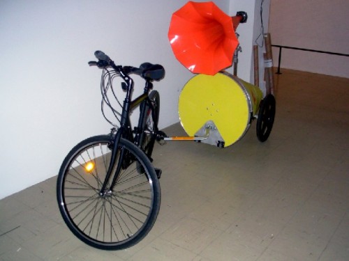 Dealing with the current Biennale de Montreal we came to grips with what is and isn't. In conversation with one of the participating artists, Daniel Jolliffe, for example, he was enthusiastic in pointing out that there was very little of the usual art as commodity; not much in the way of "collectable" paintings and objects. Ironically, his own work, a bicycle which he pedals about the city with a loud speaker system, may be viewed as a form of sculpture. We are invited to send him one minute messages which become a part off the agit-prop street blasts.