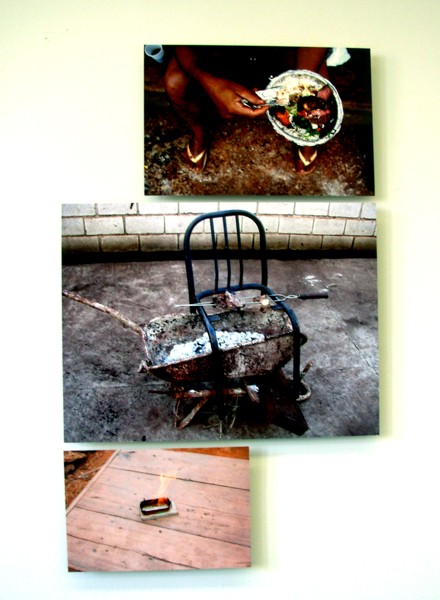 A case in point was the wonderful Montreal project of the Brazilian artist Cao Guimares. The room with groupings of photographs only made sense after viewing an accompanying video on the subject of Gambiarras. This is a Third World phenomenon of creating functional objects from found and recycled materials. The video demonstrates with side splitting humor how to replicate an expensive object or solve a practical problem. Absurdly, we view a man trying several techniques to dry a pair of sneakers. One approach is to whirl them around in the air until exhausted by the effort, to spin them in a rigged up machine, or blot them with paper. None of these schemes prove to be very effective but the video and installation of photographs represent a hilarious metaphor for the Third World Economy in which nothing is wasted and everything is recycled. This work was just brilliant.