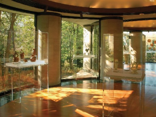 Philip Johnson’s extension is a series of hexagons. The ceilings and floors suggest the sun of ancient Indian cultures.