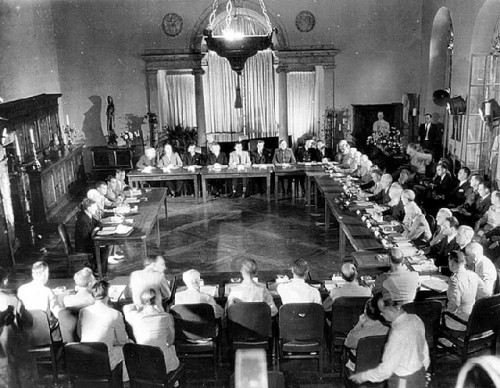 President Franklin Delano Roosevelt and most politicians of the time knew that the US had to be part of a United Nations organization when the Great War ended. The first meetings to form the UN took place in Dumbarton Oaks in 1944.