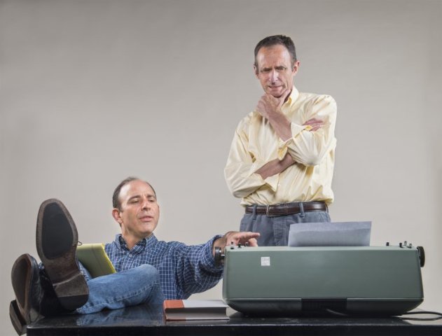 The artistic team behind the production nails it. Both actors offer great conviction to their roles, with compelling affect. They seem as if they could be the luminaries themselves. Jackson Davis personifies Kahneman’s character with great aplomb – confident, yet cautious, and displaying humanistic emotions. Brian Herndon equals him as a cocky, flamboyant, and self-indulgent Tversky. Together, they celebrate accomplishments with great abandon and clash over all manner of professional and personal issues. Director Robert Kelley keeps the pace and movement one notch below frenetic. He makes great use of the small space with simple but appropriate staging of a blackboard (remember them?) and two desks.