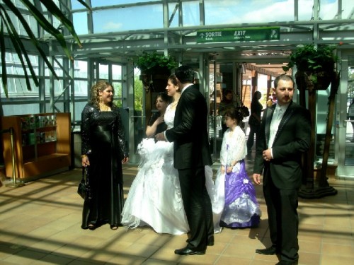 The greenhouses were just glorious as they are year round. In the lobby we were regrouping after a thorough tour when the wedding party walked in.