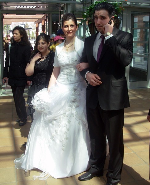 The first bride of spring it would appear. The couple, as we learned, was Kurdish. How interesting that they had settled in Montreal. The bride, for course, was just radiant on her day of days attended to by a girl holding her train.