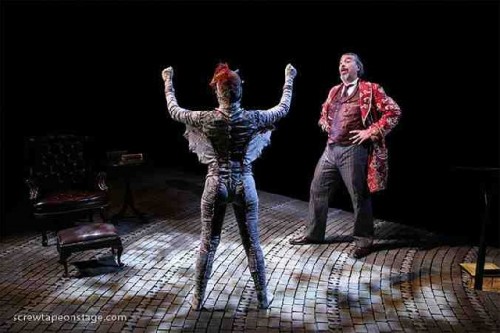 The Screwtape Letters, created by Jeffrey Fiske and Max Mclean, who plays one of the devil’s underlings, has been traveling around the country for a few years, and played to acclaim in New York once before. It is an arresting and fascinating monologue and performance. Screwtape reports an underling's effort to subvert God and gives his own interpretation of ‘how-to’ stop this. Even though there is only one character who speaks, his amanuensis, Toadpipe, a personal secretary, prowls around him and his purgatory for the entire rant. Toadpipe, performed with spot on timing by Karen Eleanor Wight. is crawling, bounding and climbing around a wonderfully conceived upper layer of hell.