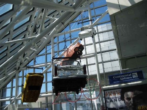 You enter an impressive lobby with suspended hot rods, giant guitars, and a great feeling of space.