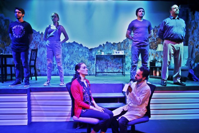 Matherson has developed a clear approach. The characters don’t only speak to each other. At times, at least one, merely inches away from us, addresses the audience as though we’re part of the musical’s world. Characters sometimes enter from the audience seating area. The take-home message is clear: Mental illness affects each of us, directly or indirectly.